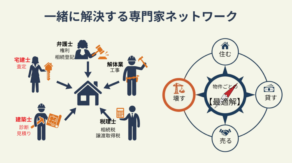 この選択を適切なタイミングで行うためには、親御さんが元気なうちに、あるいは家が空き家になってすぐの段階で動き出すことが重要です。
